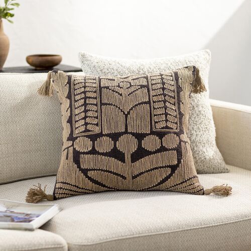 Myrna Patterned Cotton Accent Pillow, Beige/Black