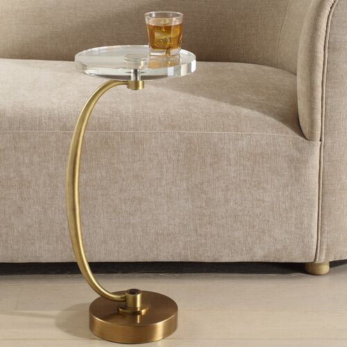 Wolfgang Accent/Drink Table, Crystal/Brass