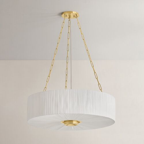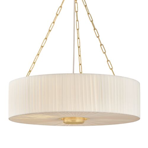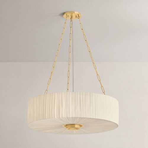 Elise Chandelier, Pleated Ivory Linen/Aged Brass