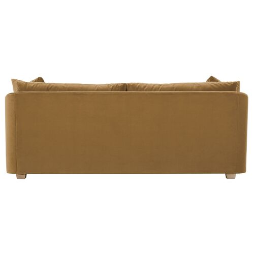 Cedar 87" Channel Back Bench-Seat Sofa, Caramel Velvet