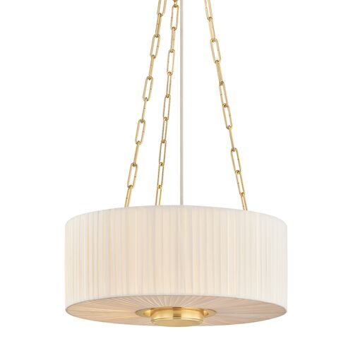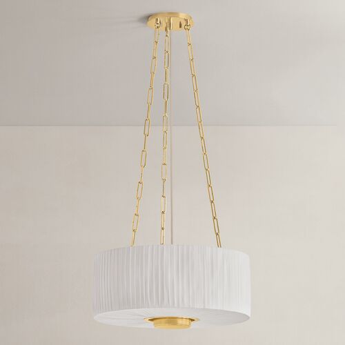 Elodie Pleated Pendant, Ivory Linen/Aged Brass