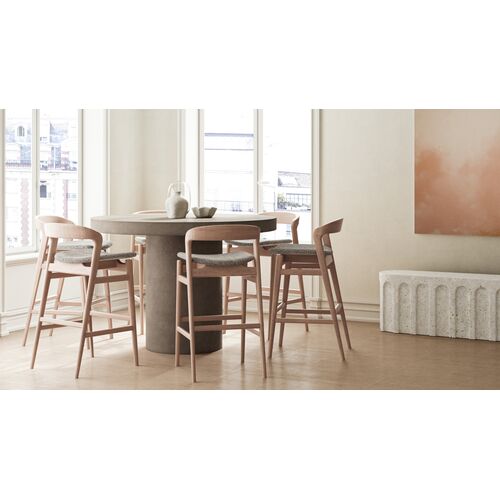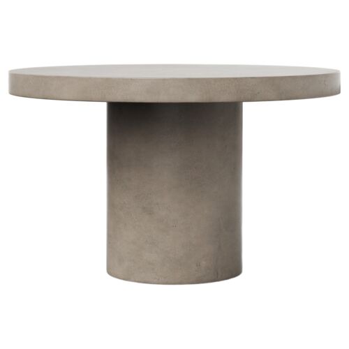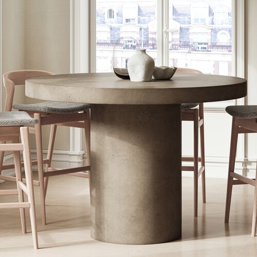 Maelis Indoor/Outdoor Scallop Edge 54" Round Concrete Dining Table, Washed Travertine