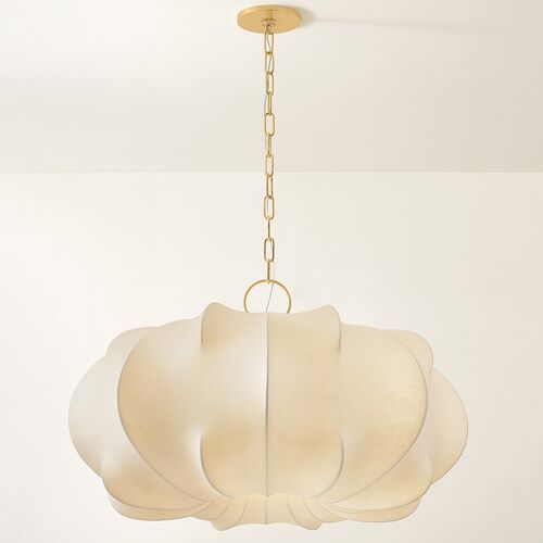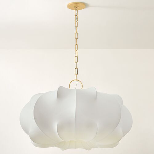 Venla Wide Pendant, Aged Brass/White Linen