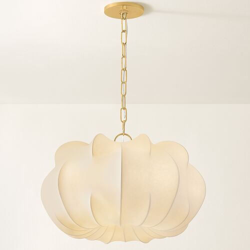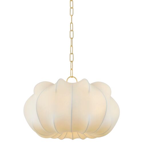 Meshelle 17" Pendant, Aged Brass/White Linen