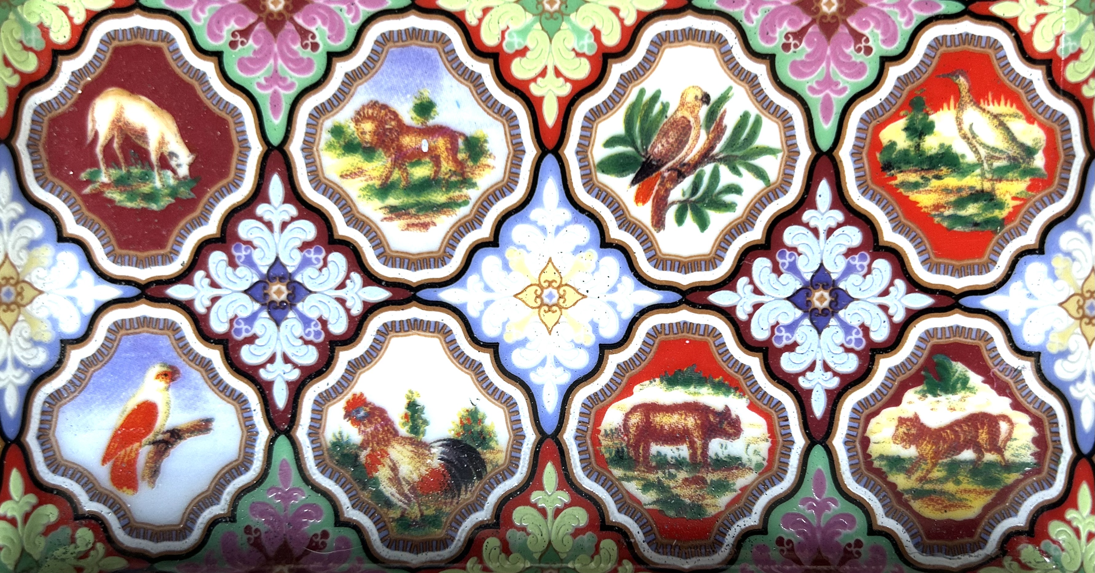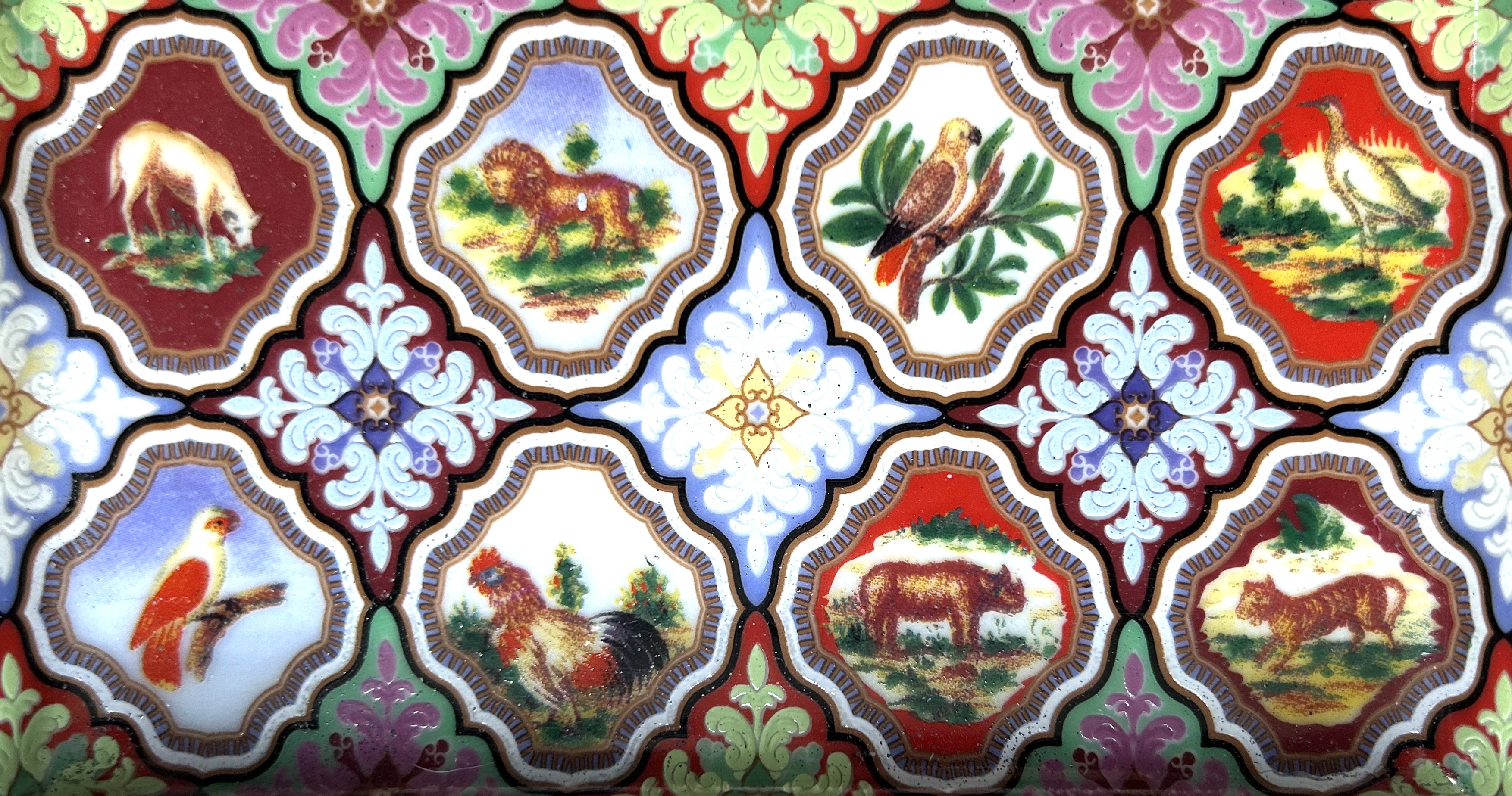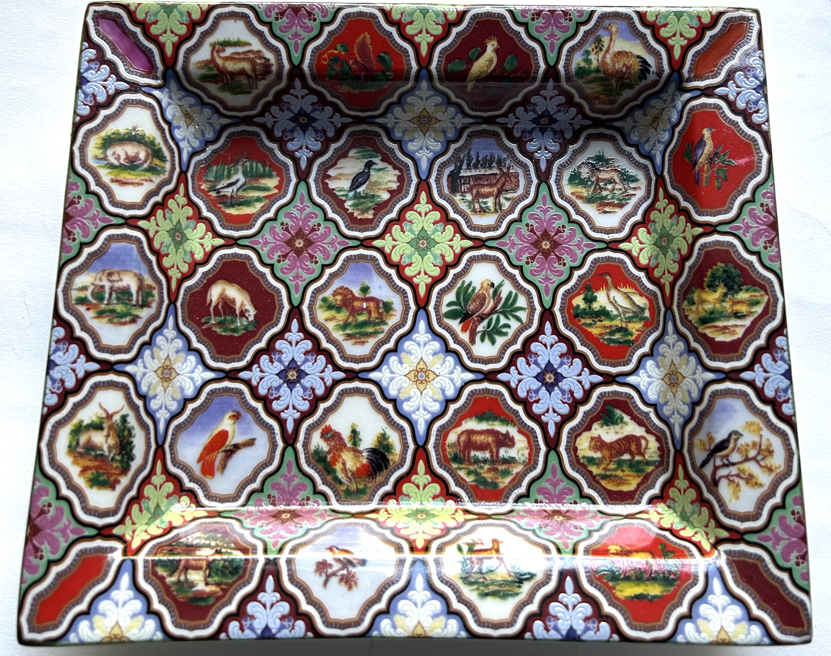 Enameled Porcelain Animals & Birds Tray