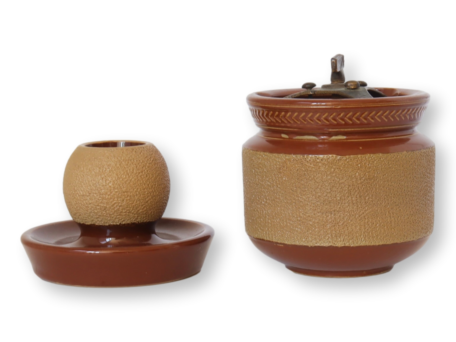 English Stoneware Humidor & Matchstriker