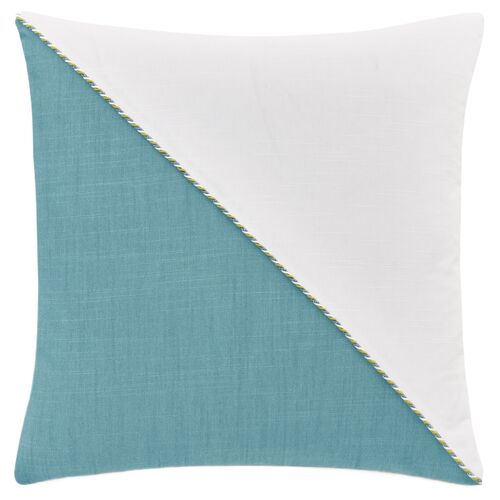 Esme 22x22 Colorblock Pillow, Blue/White