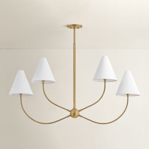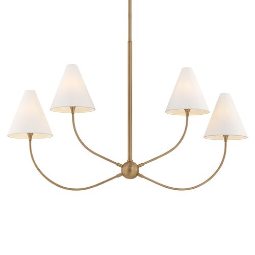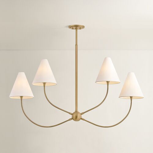 Evermore Linear Chandelier, Patina Brass/Off White Linen