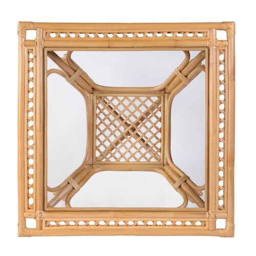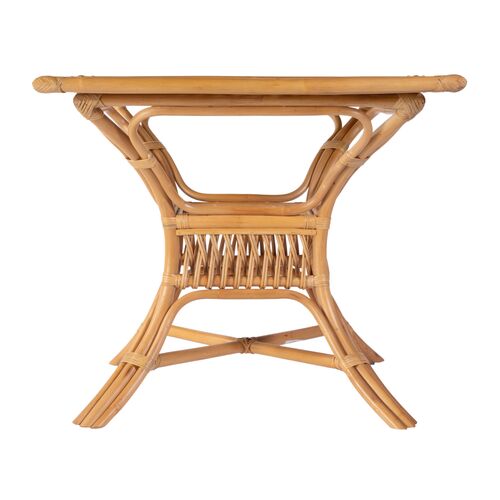 Evric 34.25" Square Rattan Glass Top Dining Table, Natural