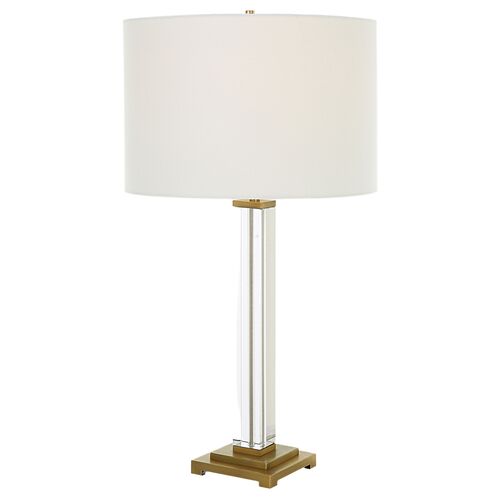 Fabian Crystal Column Table Lamp, Brass/Clear
