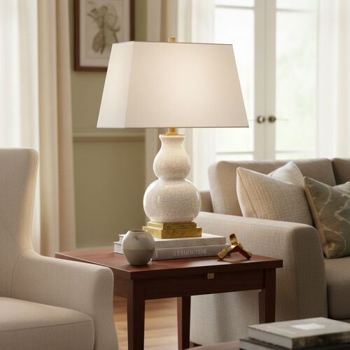 Fang Gourd Table Lamp, Ivory Crackle Ceramic