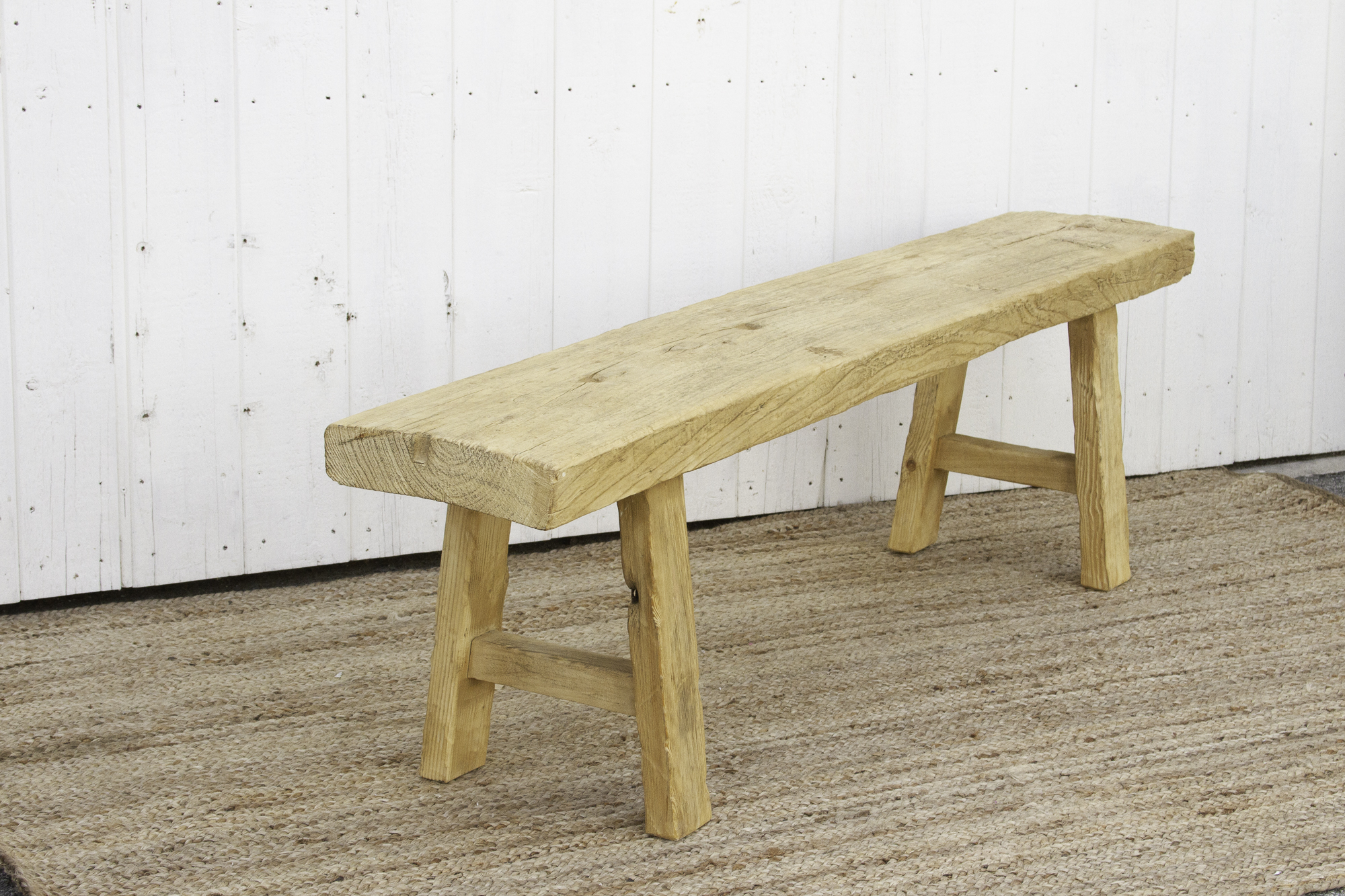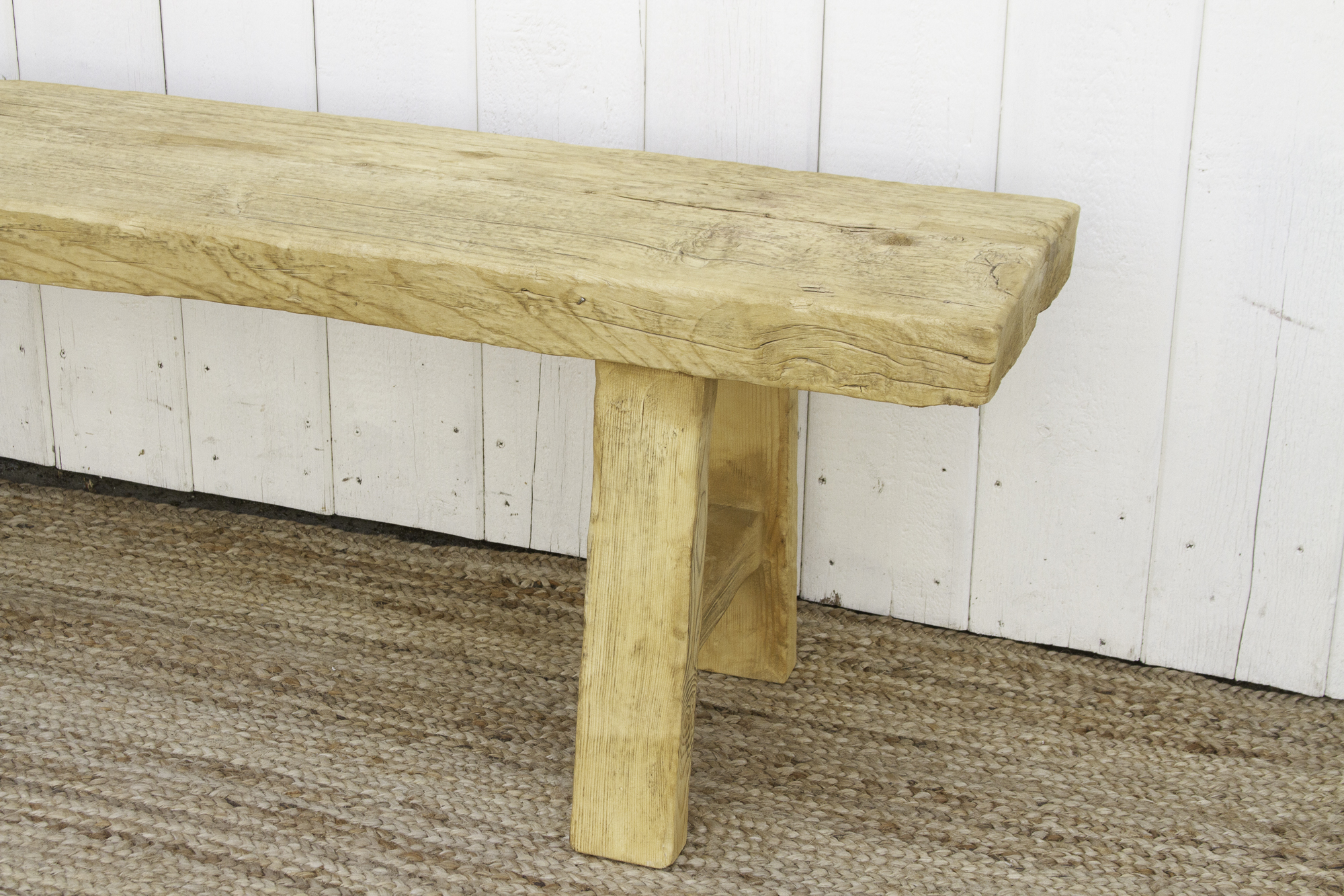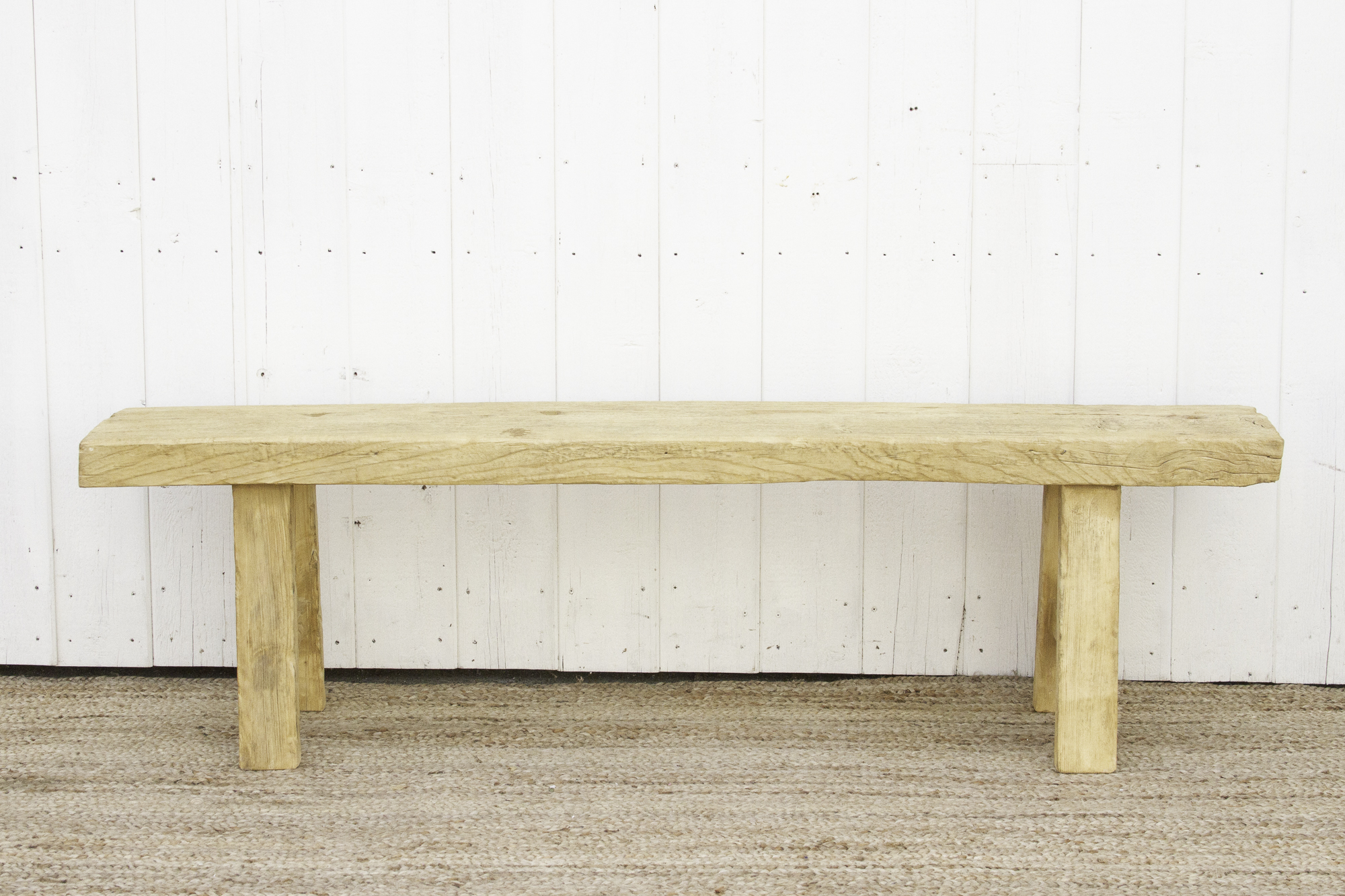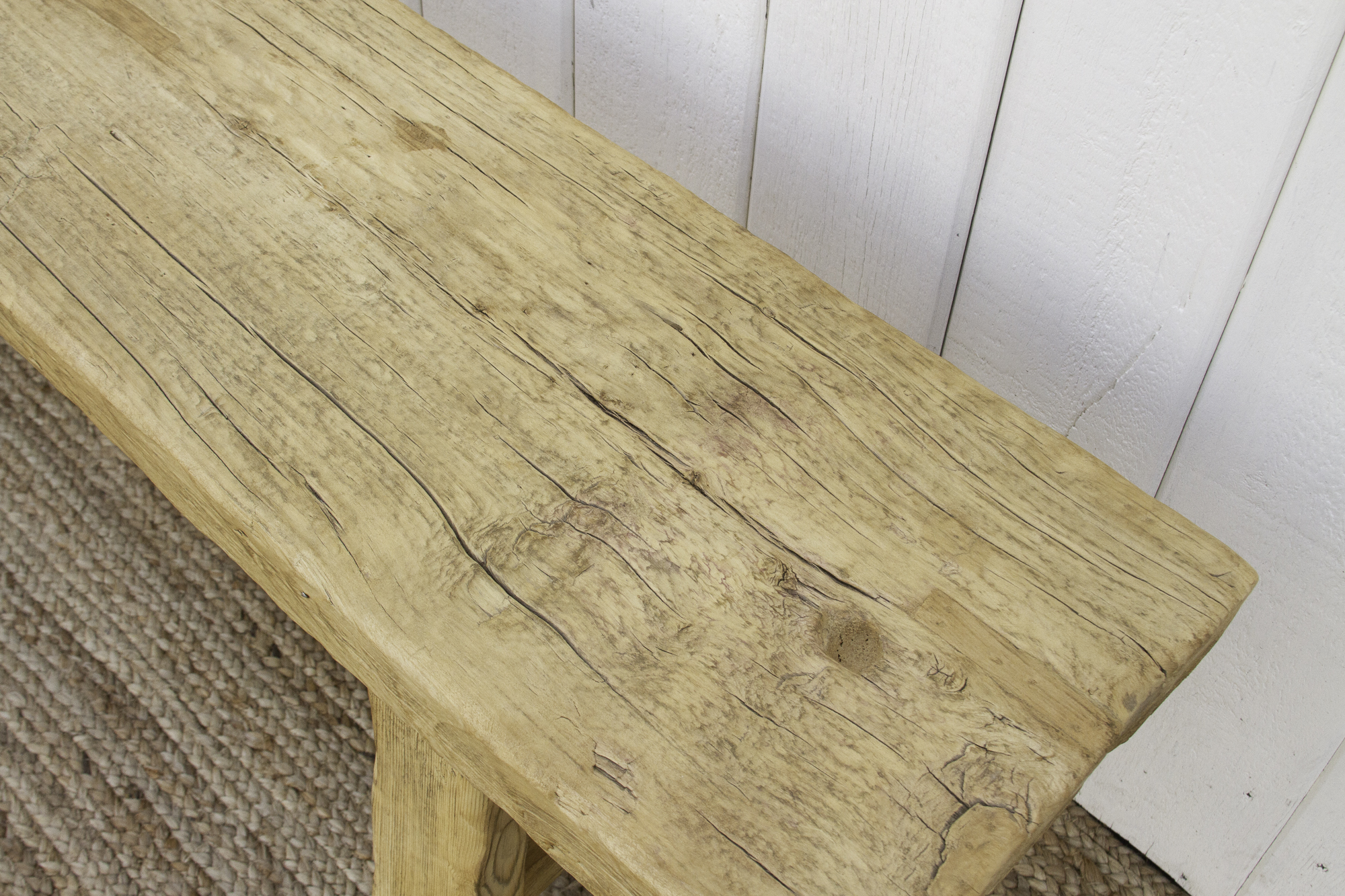 Rustic Bleached Wood Farmhouse Bench
