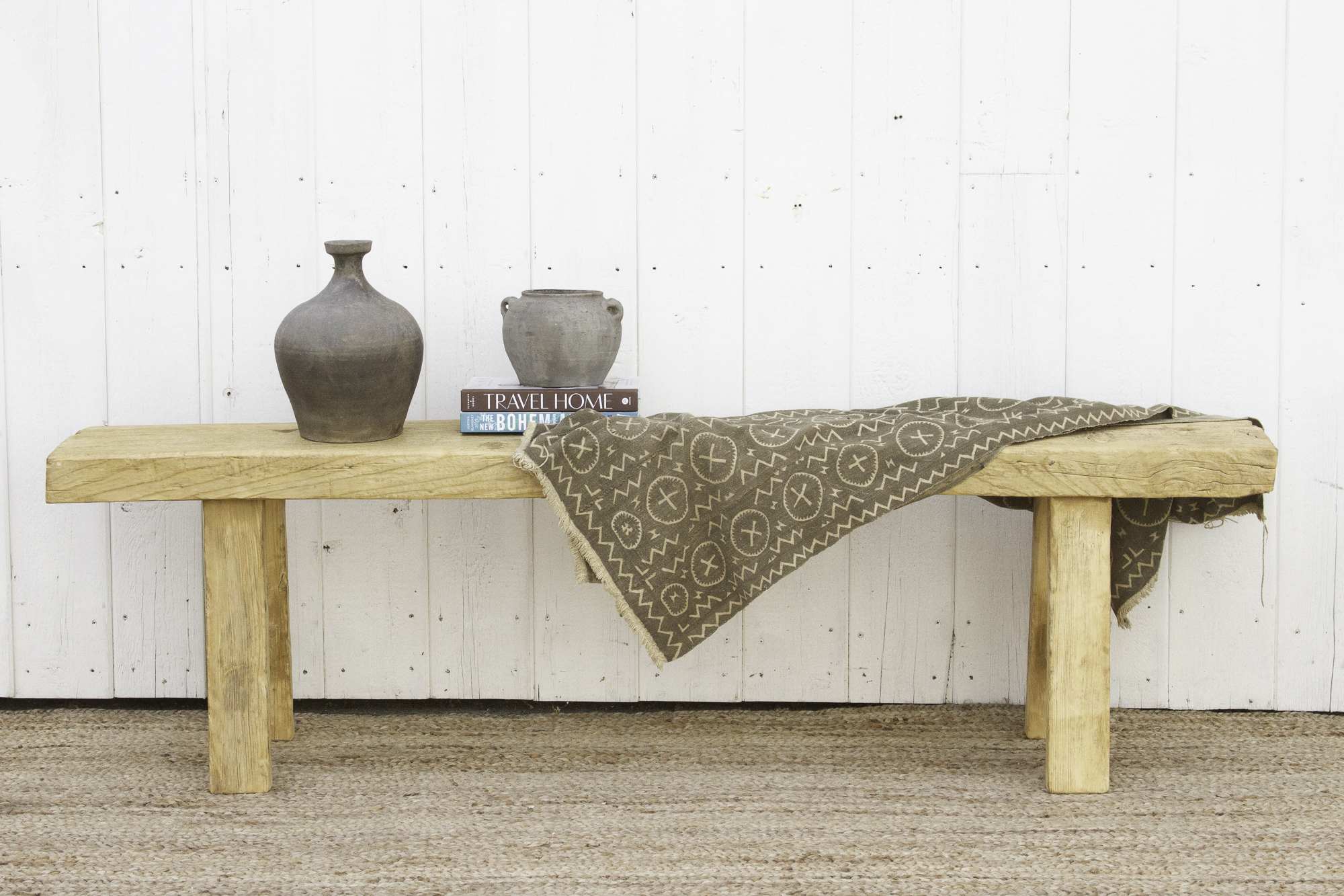 Asian Rustic Bleached Wood Bench