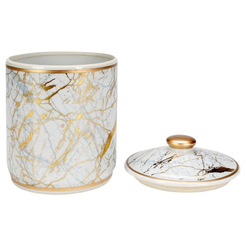 Faux Marble Cylindrical Jar, Gold