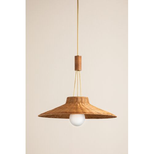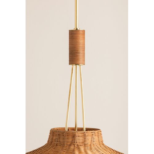 Orsten Pendant, Aged Brass/Light Natural Twisted Palm Leaves