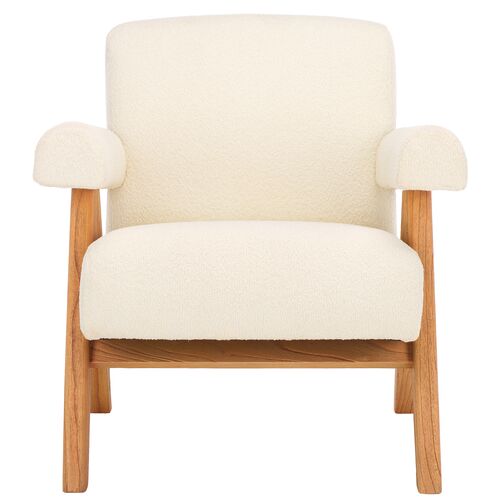 Harlow Wood And Boucle Dining Chair, Ivory/Natural