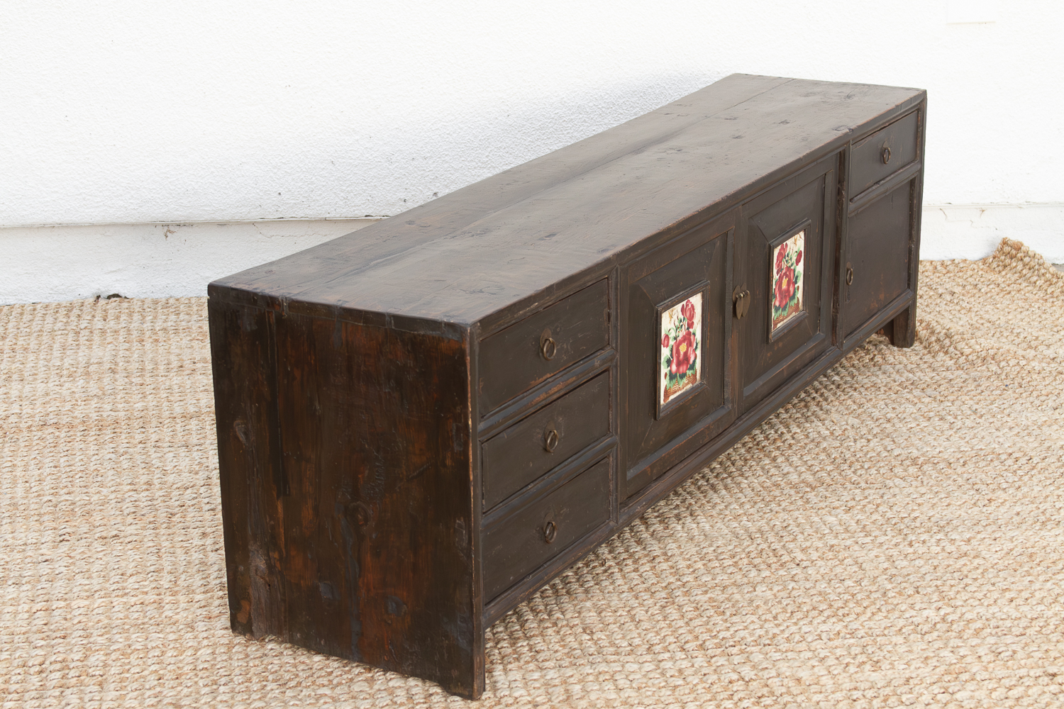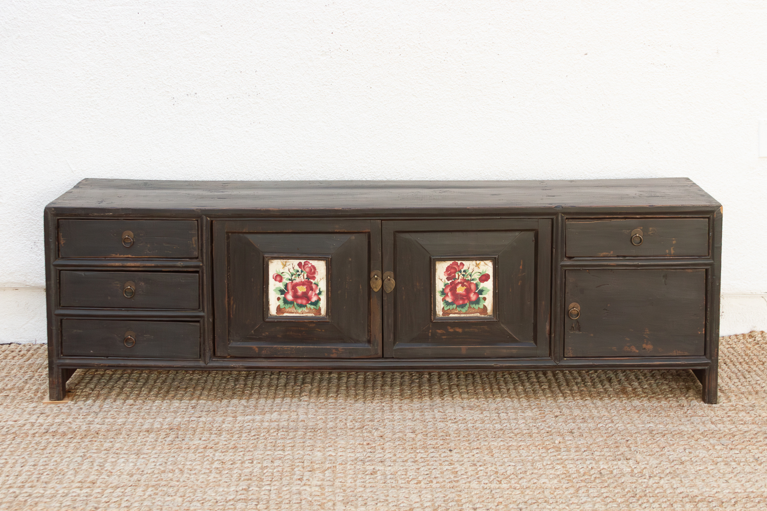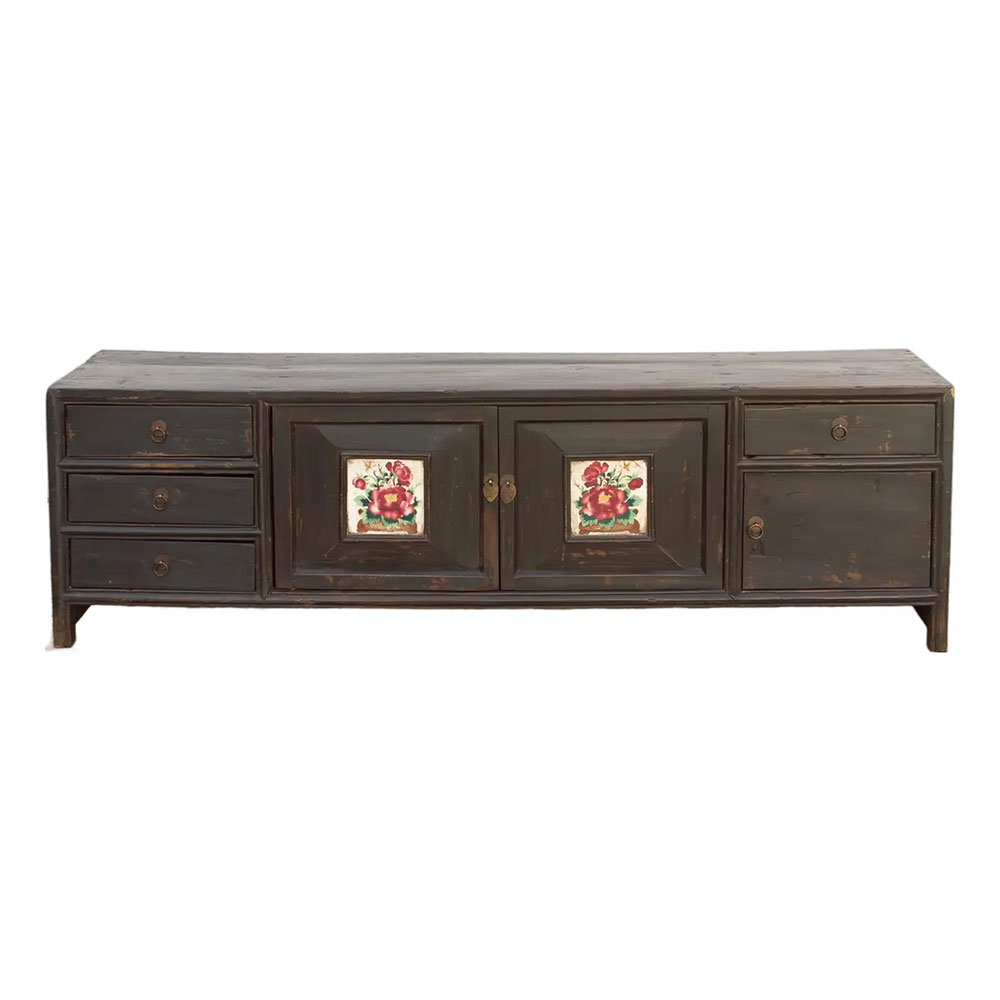 Floral Antique Chinese Kang Cabinet
