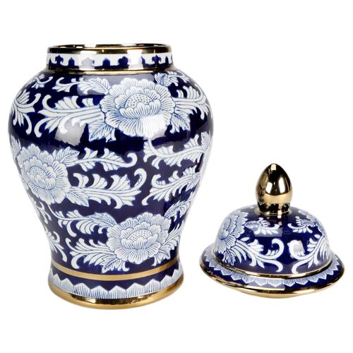 Floral Temple Jar, Blue/Gold