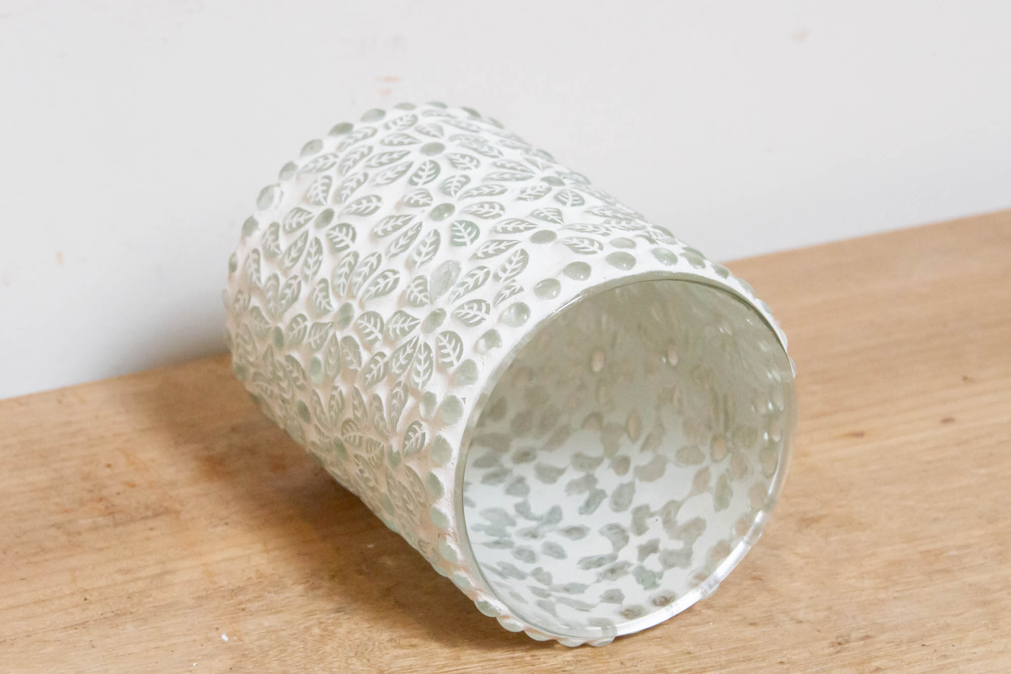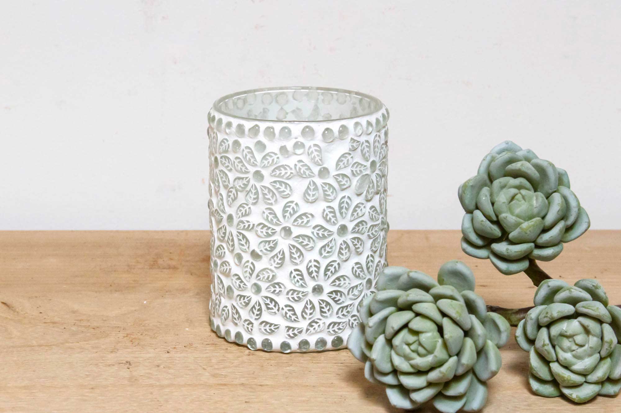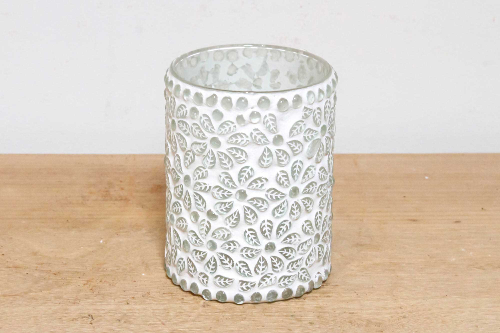 Floral White Mosaic Glass Tea Light Cand