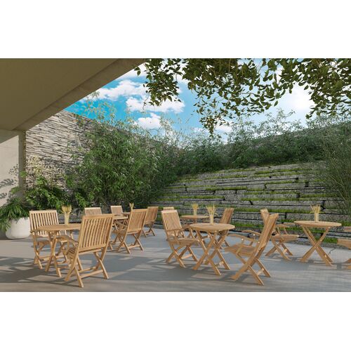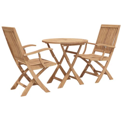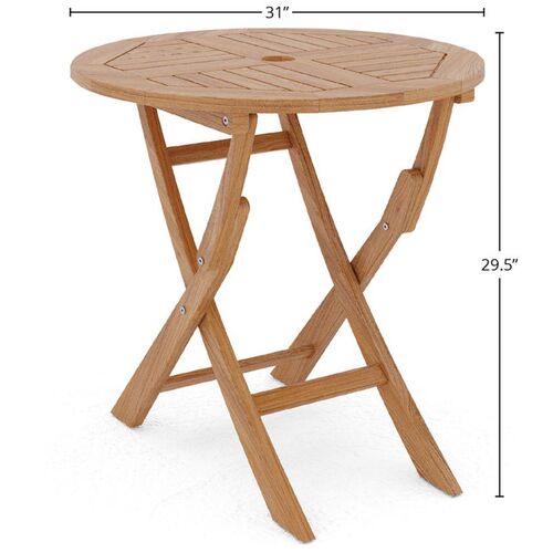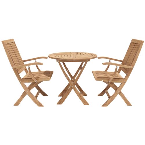 Florentia 3-Piece Round Teak Outdoor Bistro Set w/ Folding Table and Folding Armchairs, Natural