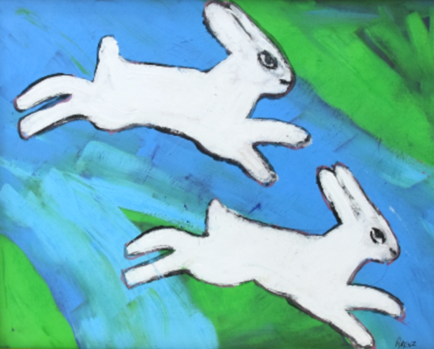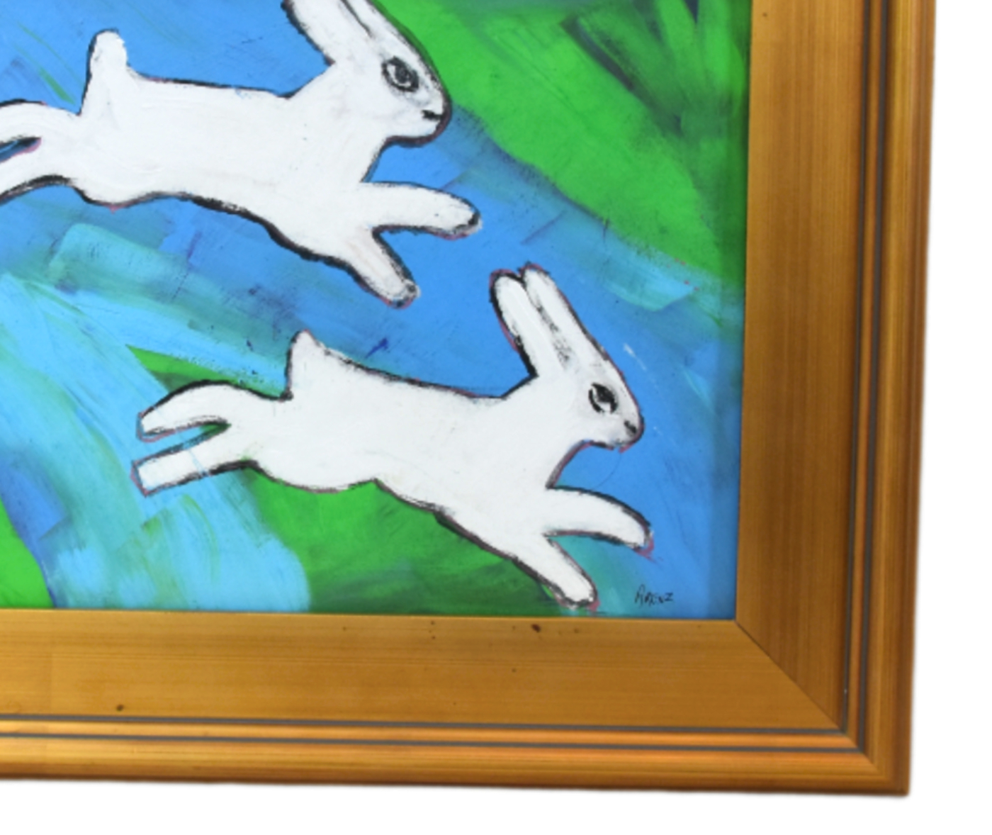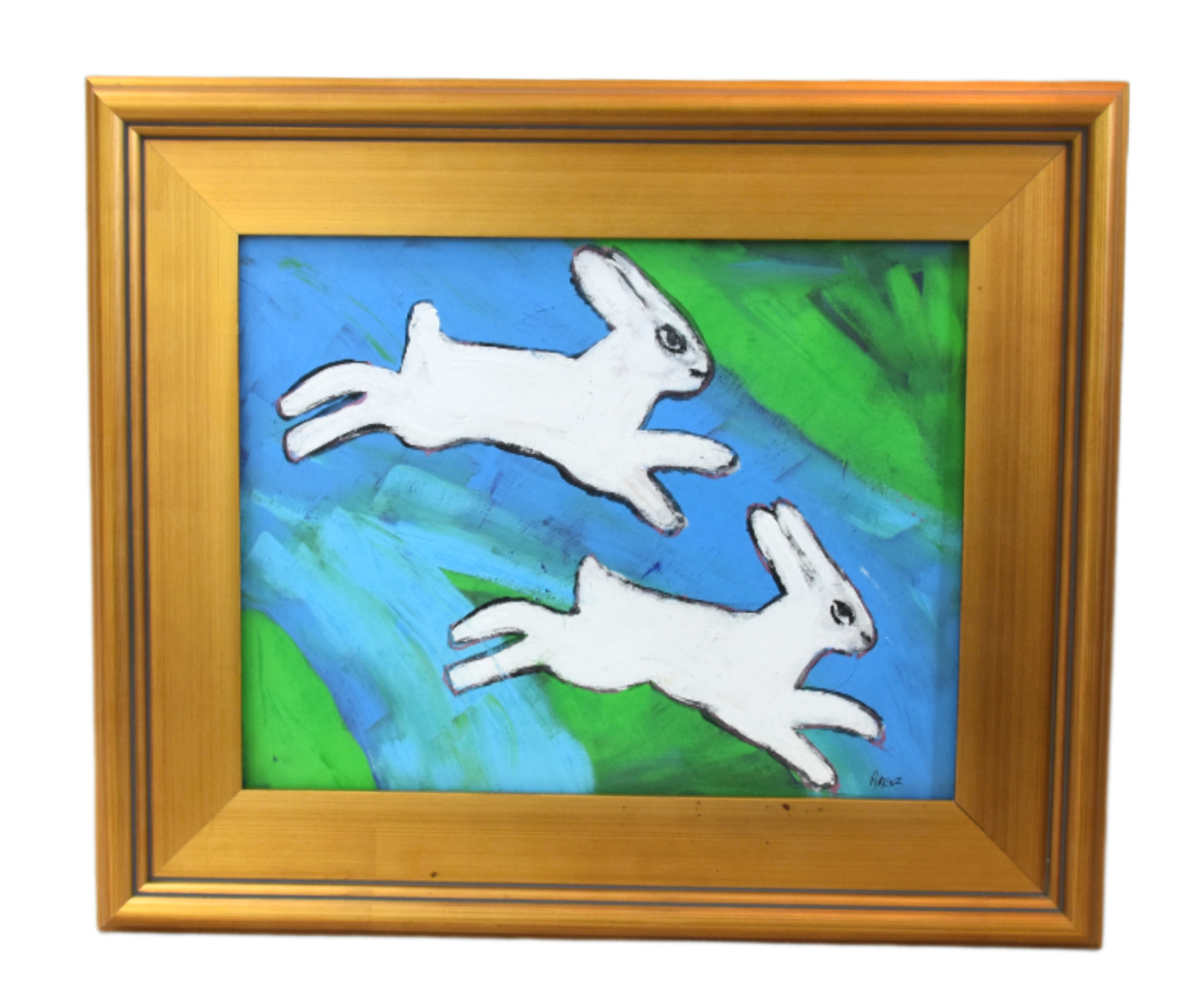 Folk Art Bunny Rabbit Hare Oil Painting