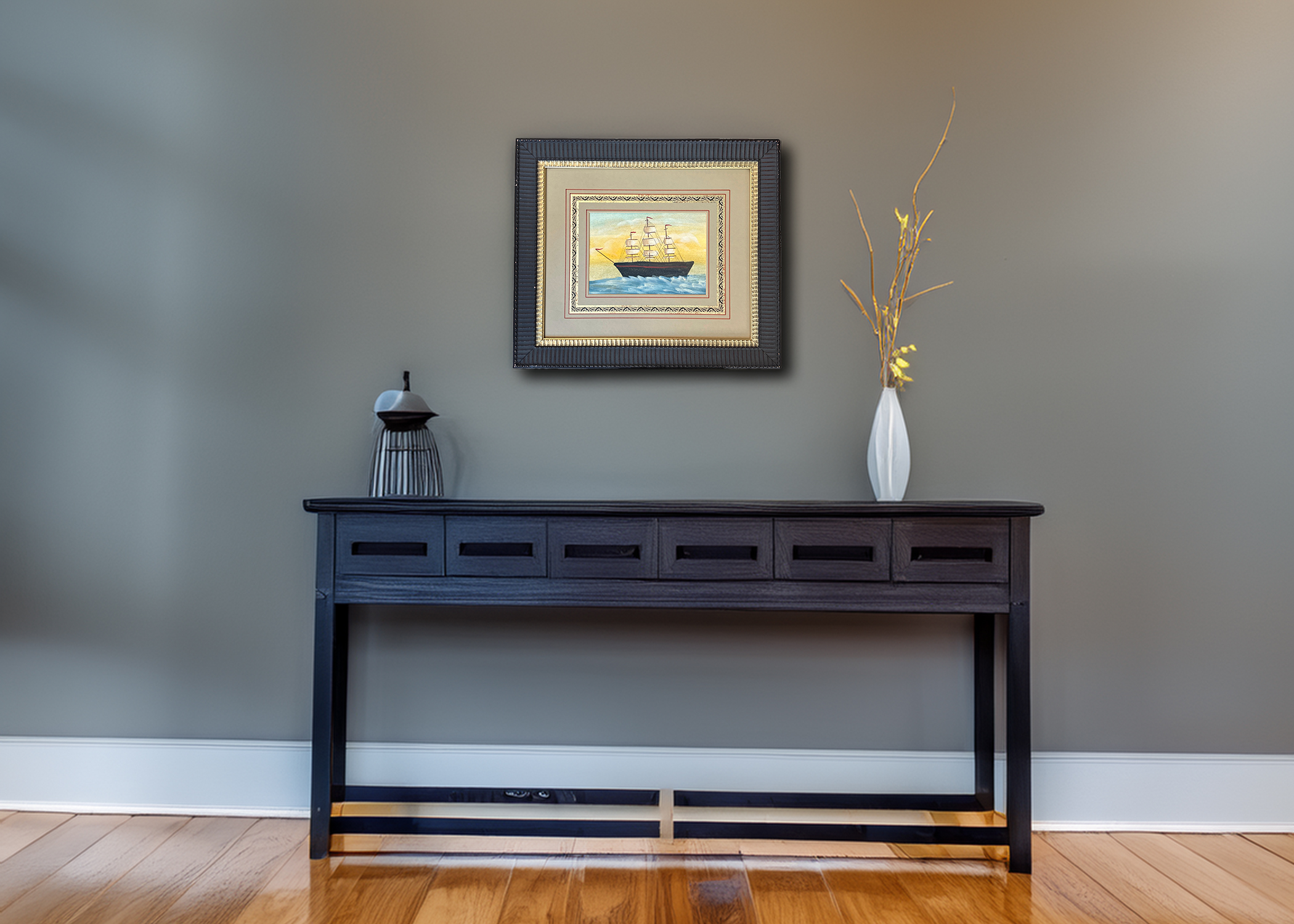 Folk Art Schooner Ship Watercolor