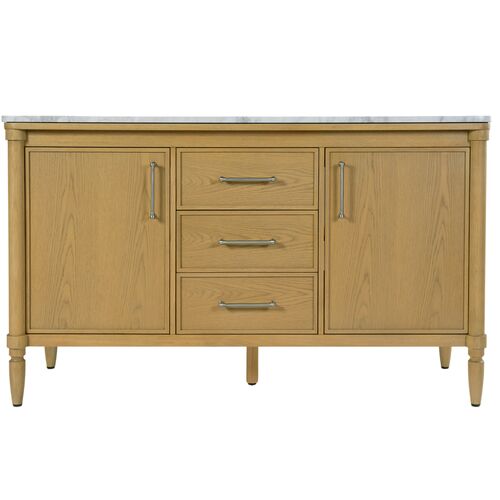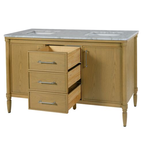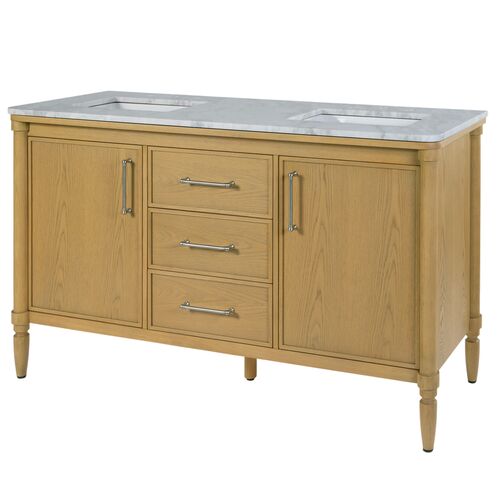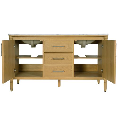Frederick Marble Double Sink Bathroom Vanity, Light Oak