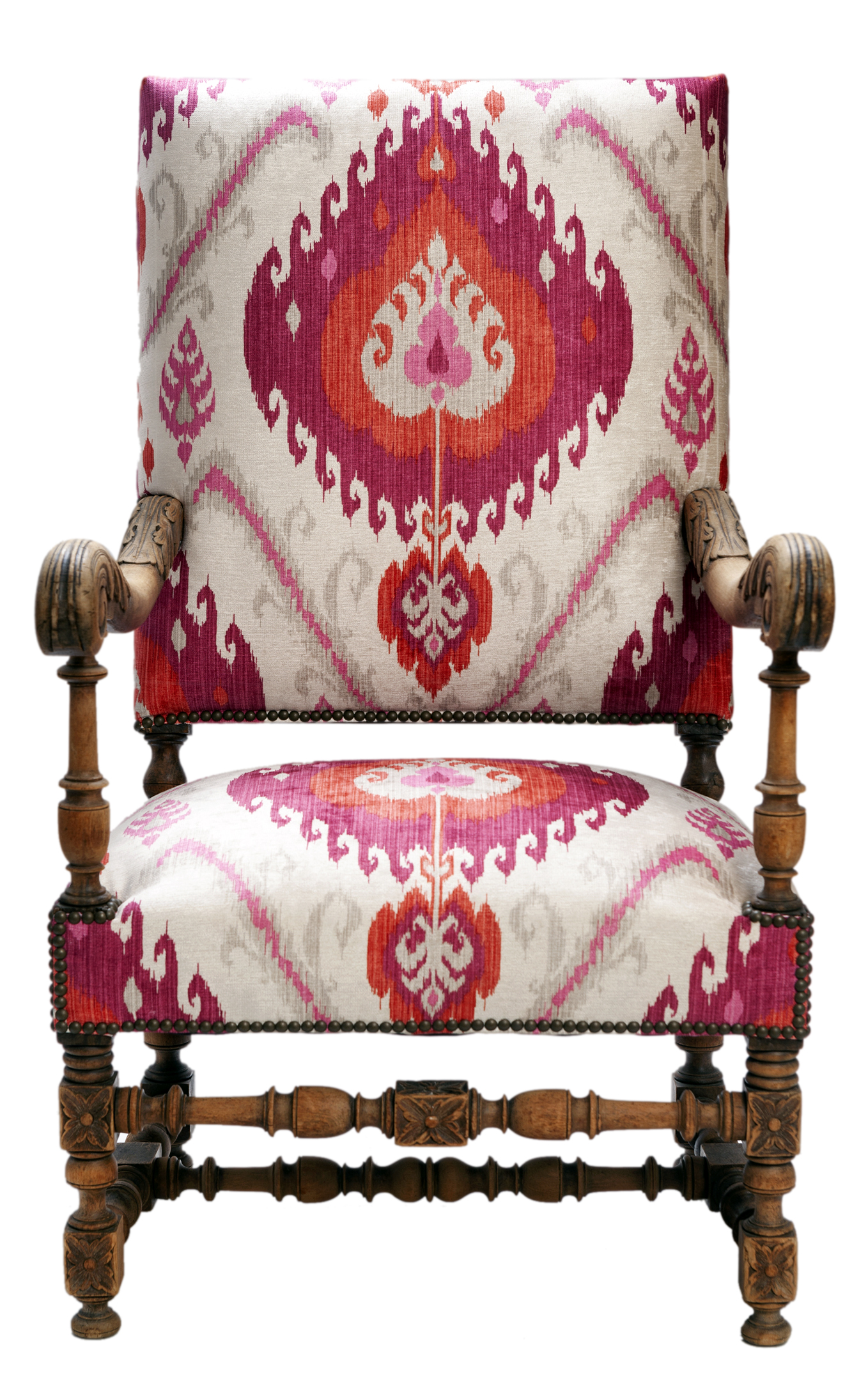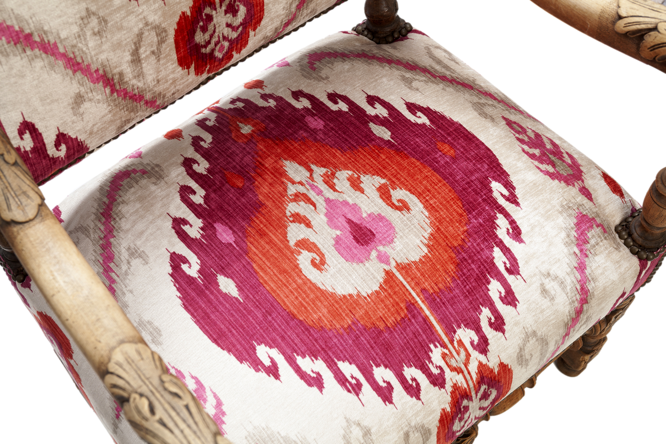 French Armchair /Colorful Ikat Velvet