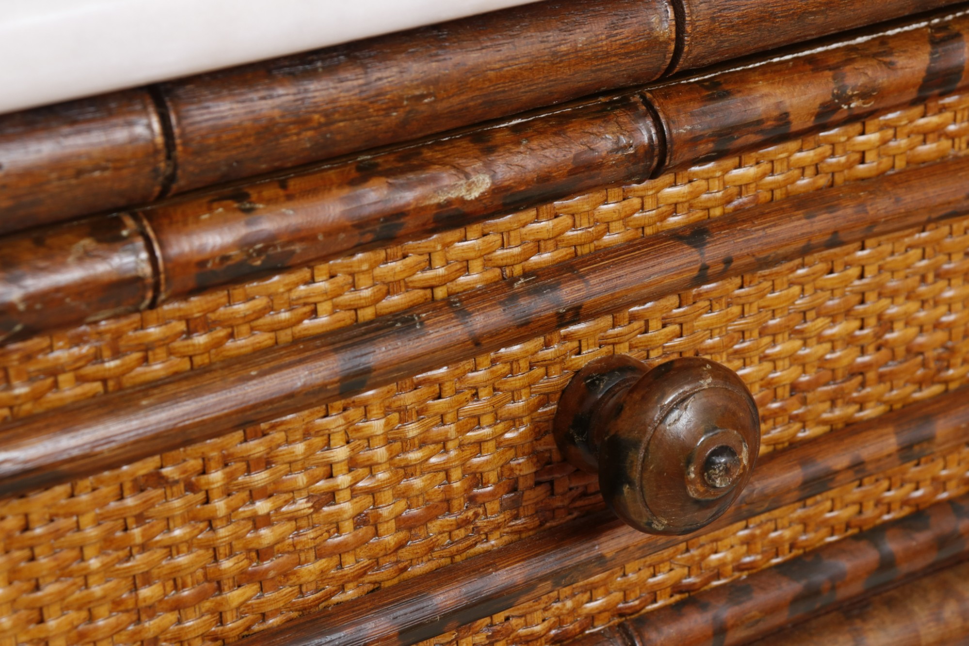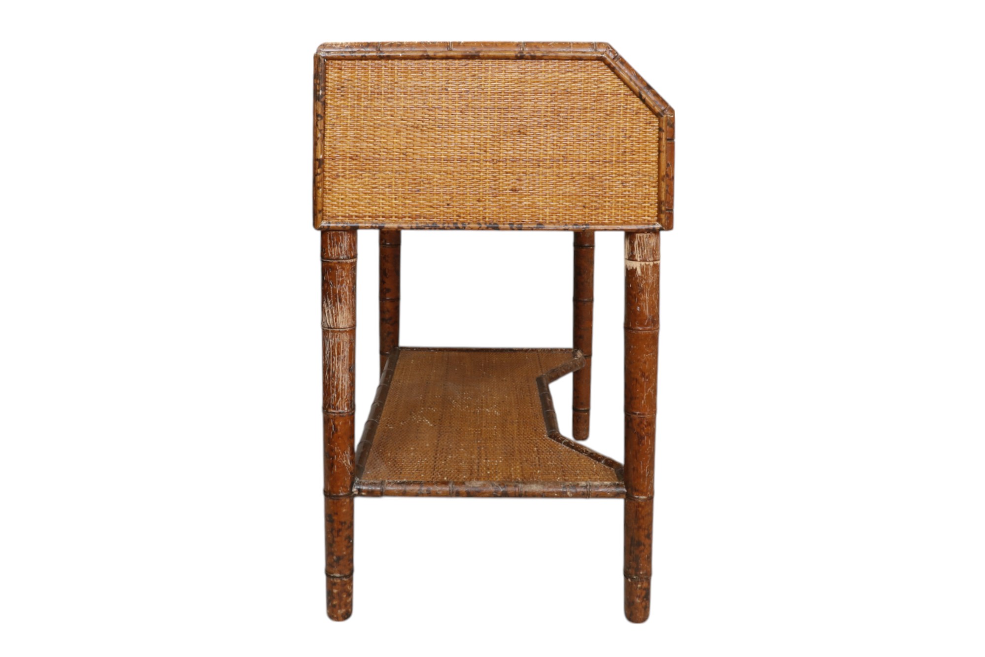 French Marble Top Faux Bamboo Side Table