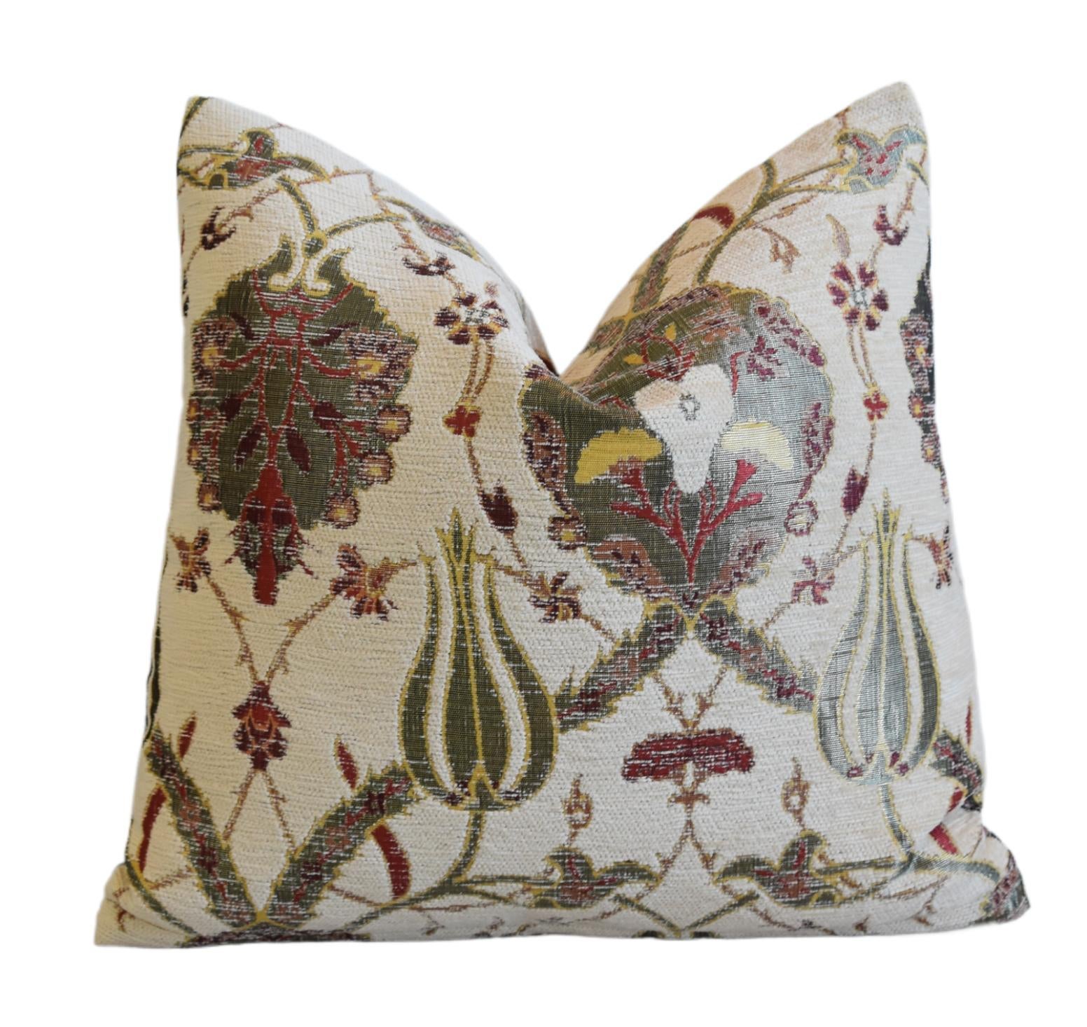 French Velvety Chenille Floral Pillow