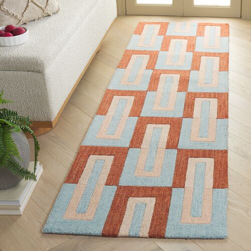 Gaia Hand Tufted Rug, Light Blue/Rust