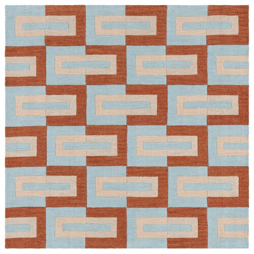 Gaia Hand Tufted Rug, Light Blue/Rust