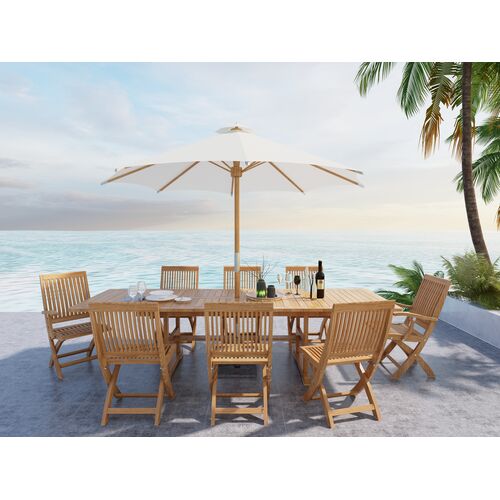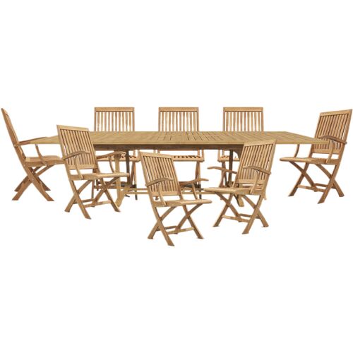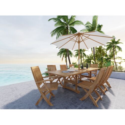 Calindra 5-Piece Outdoor Rectangular Teak Counter Height Dining Set w/ Folding Armchairs