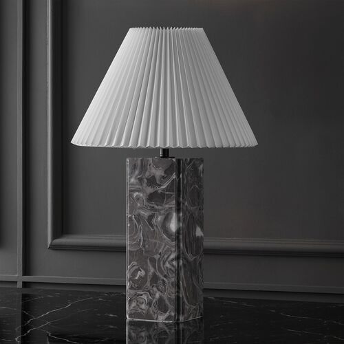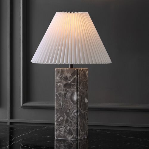 Genevieve Square Marble Table Lamp w/ Pleated Shade