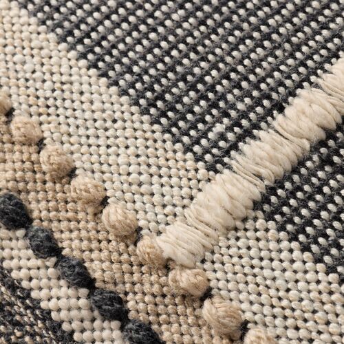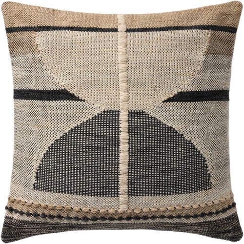 Geovia 22" Hand Loomed Geometric Pillow, Ivory/Black