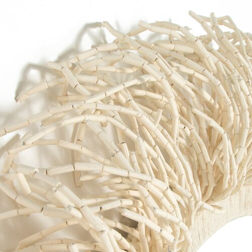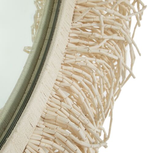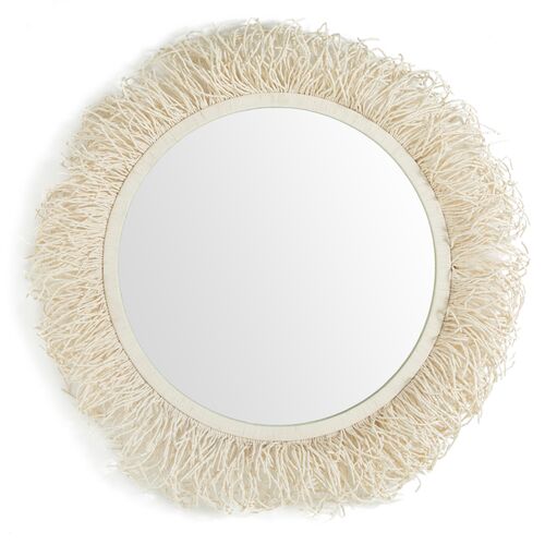 Giselle Round Elongated Beaded Wall Mirror, Ivory