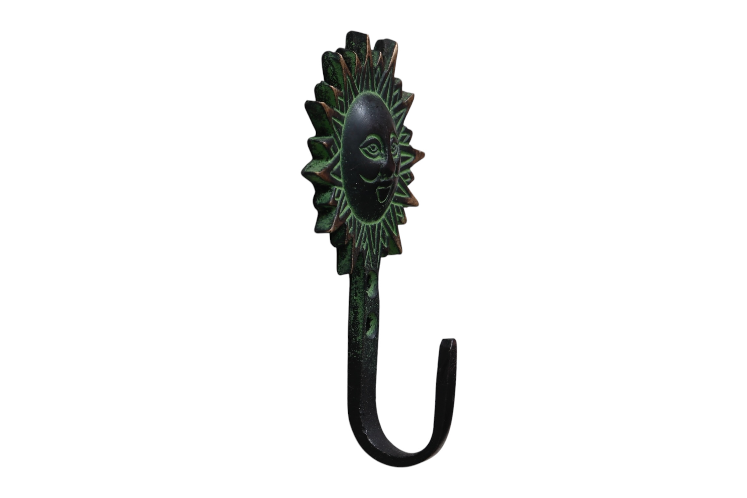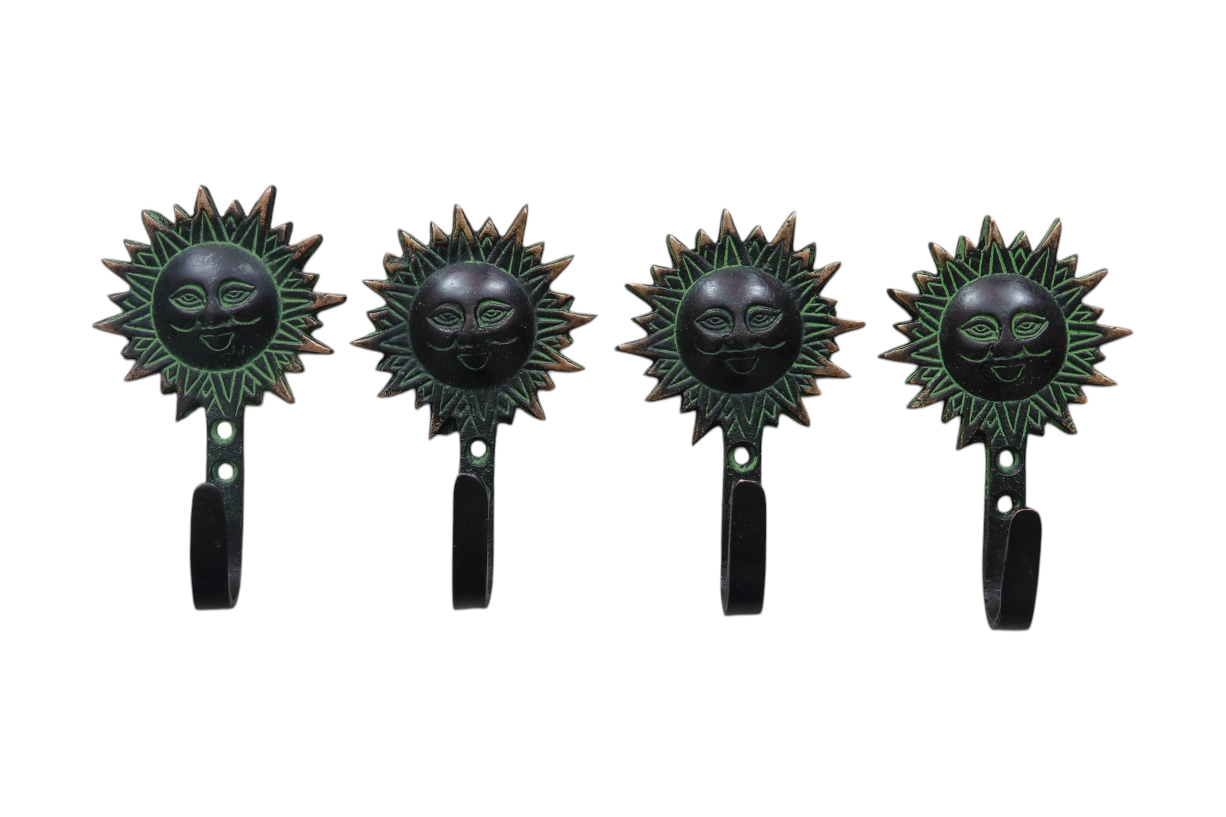 Green Brass Sun Wall Hooks - Set of 4