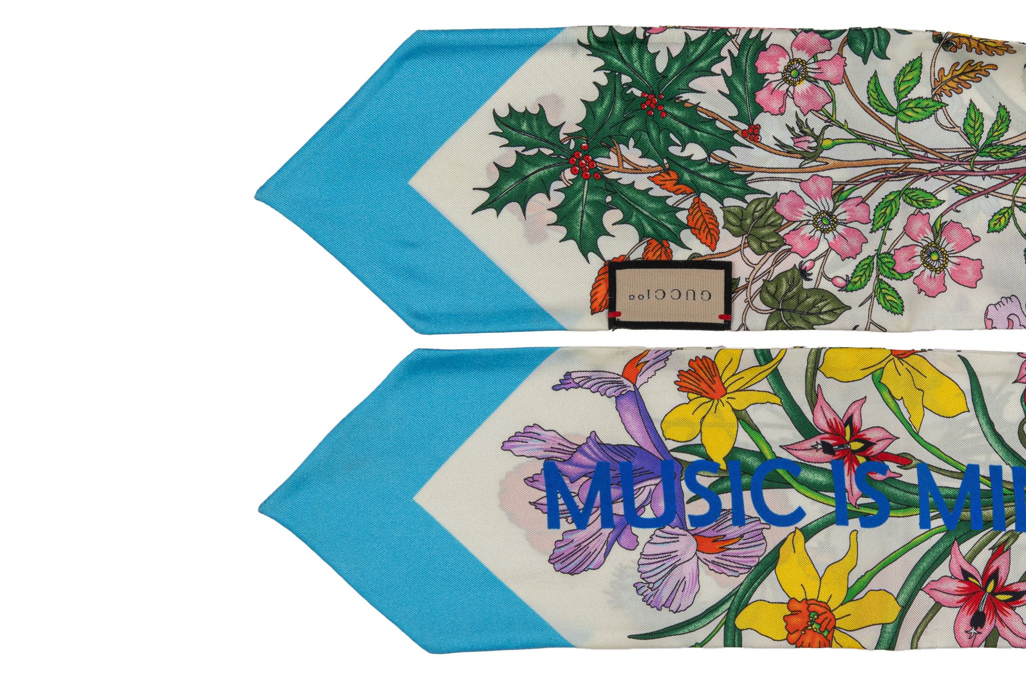 Gucci x Music Silk Turquoise Ascot New