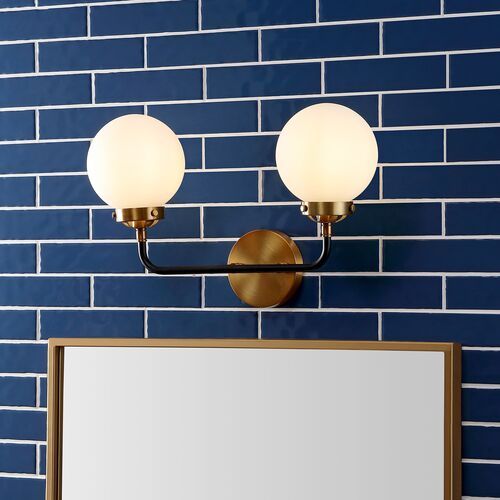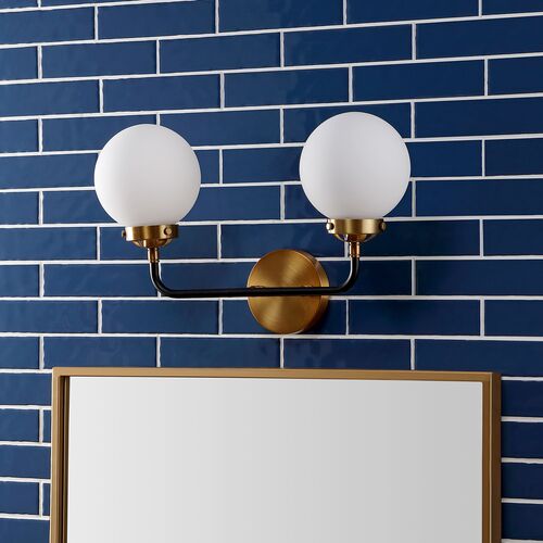 Haldrin Frosted Glass Globe Vanity Wall Sconce, Gold/Black
