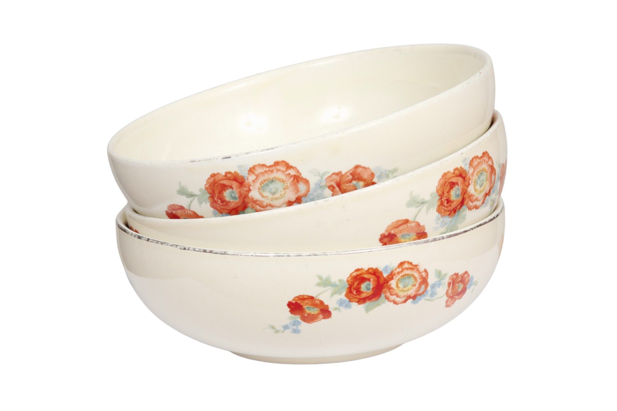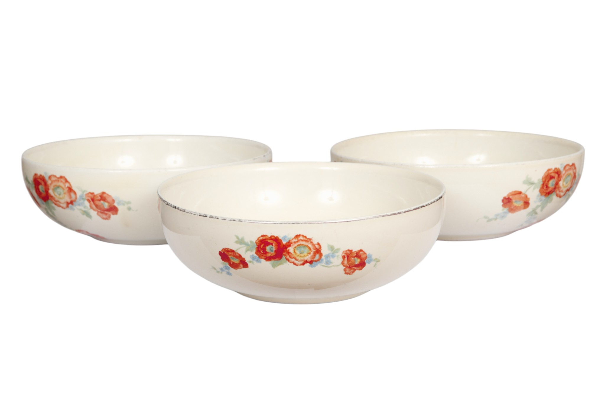Hall’s Orange Poppy Ceramic Bowls, S/3