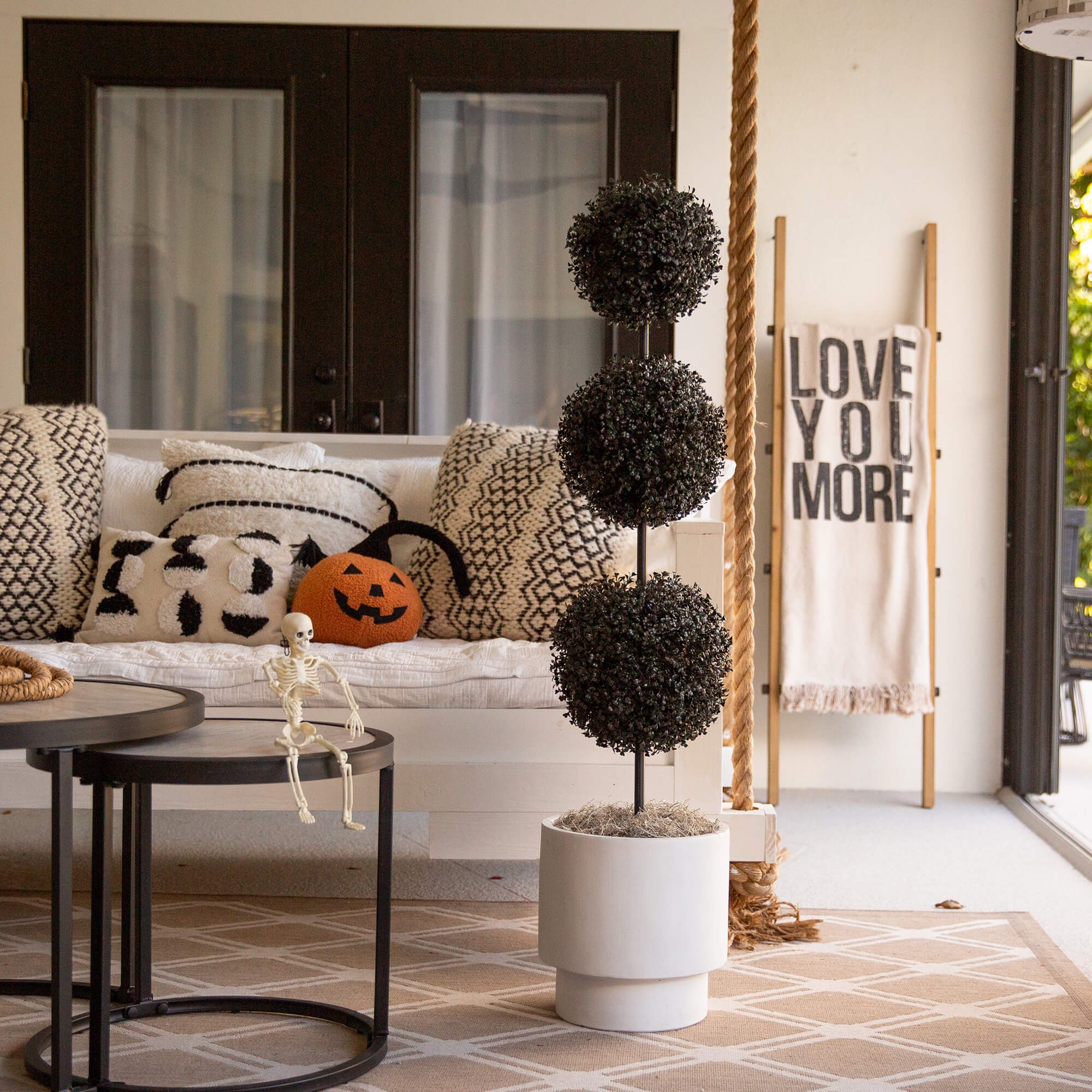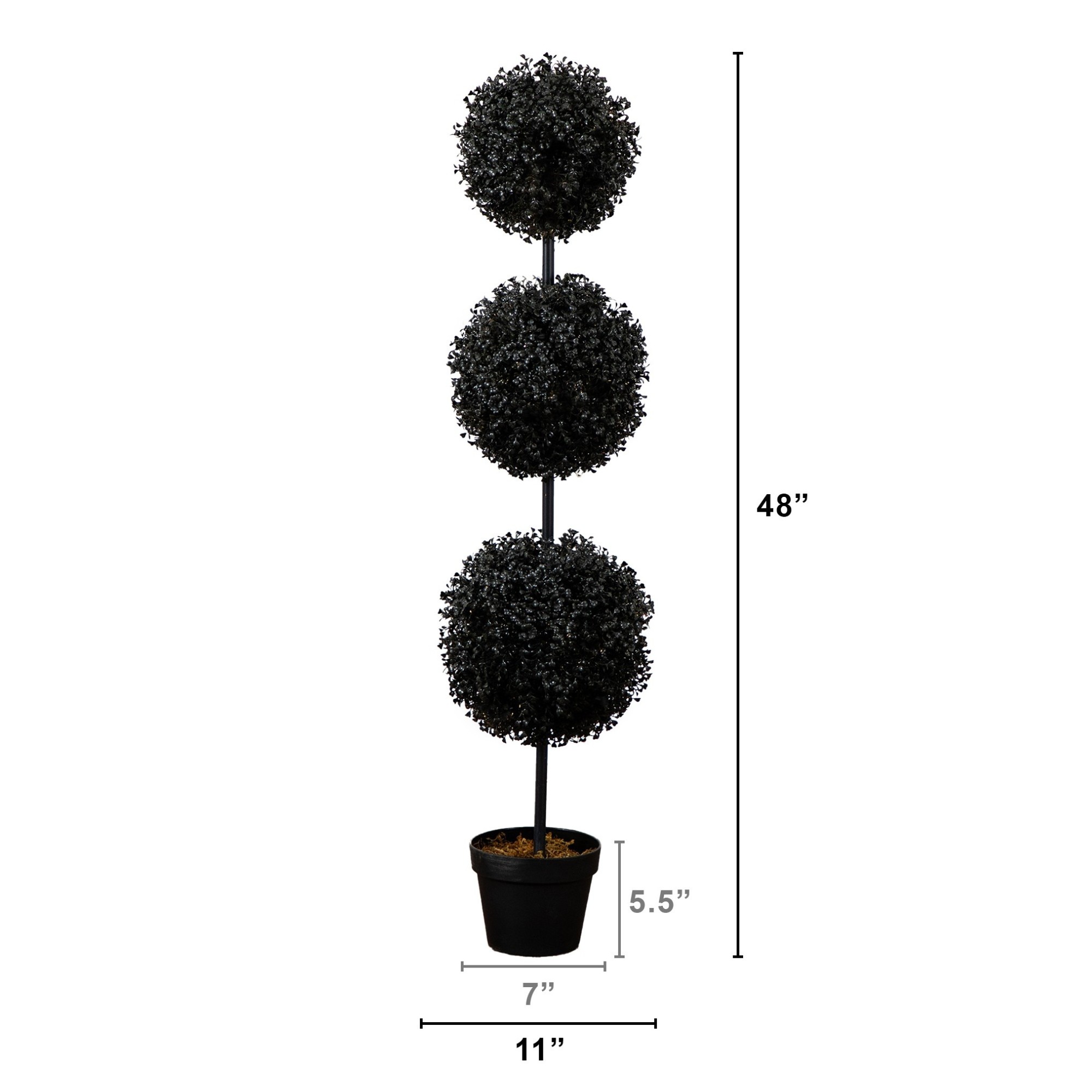 Halloween Indoor/Outdoor Triple Ball Boxwood Topiary, Black