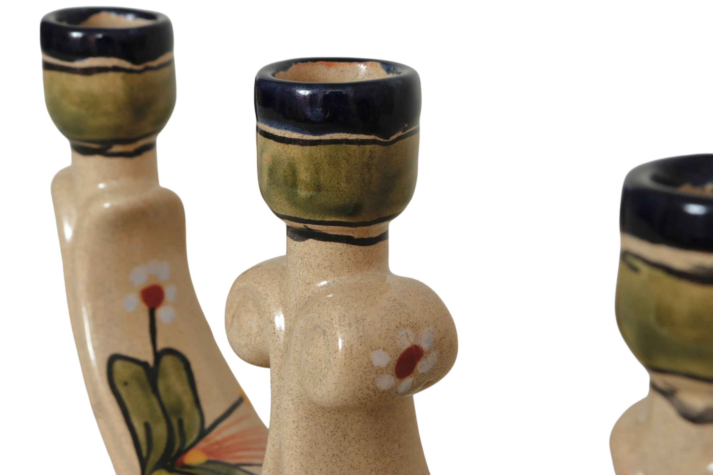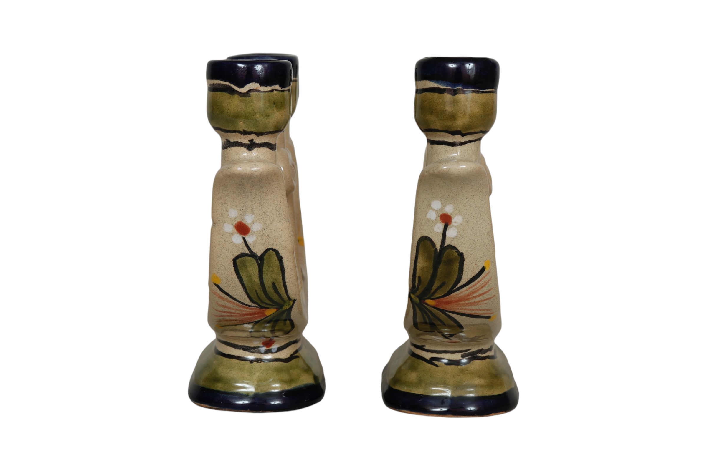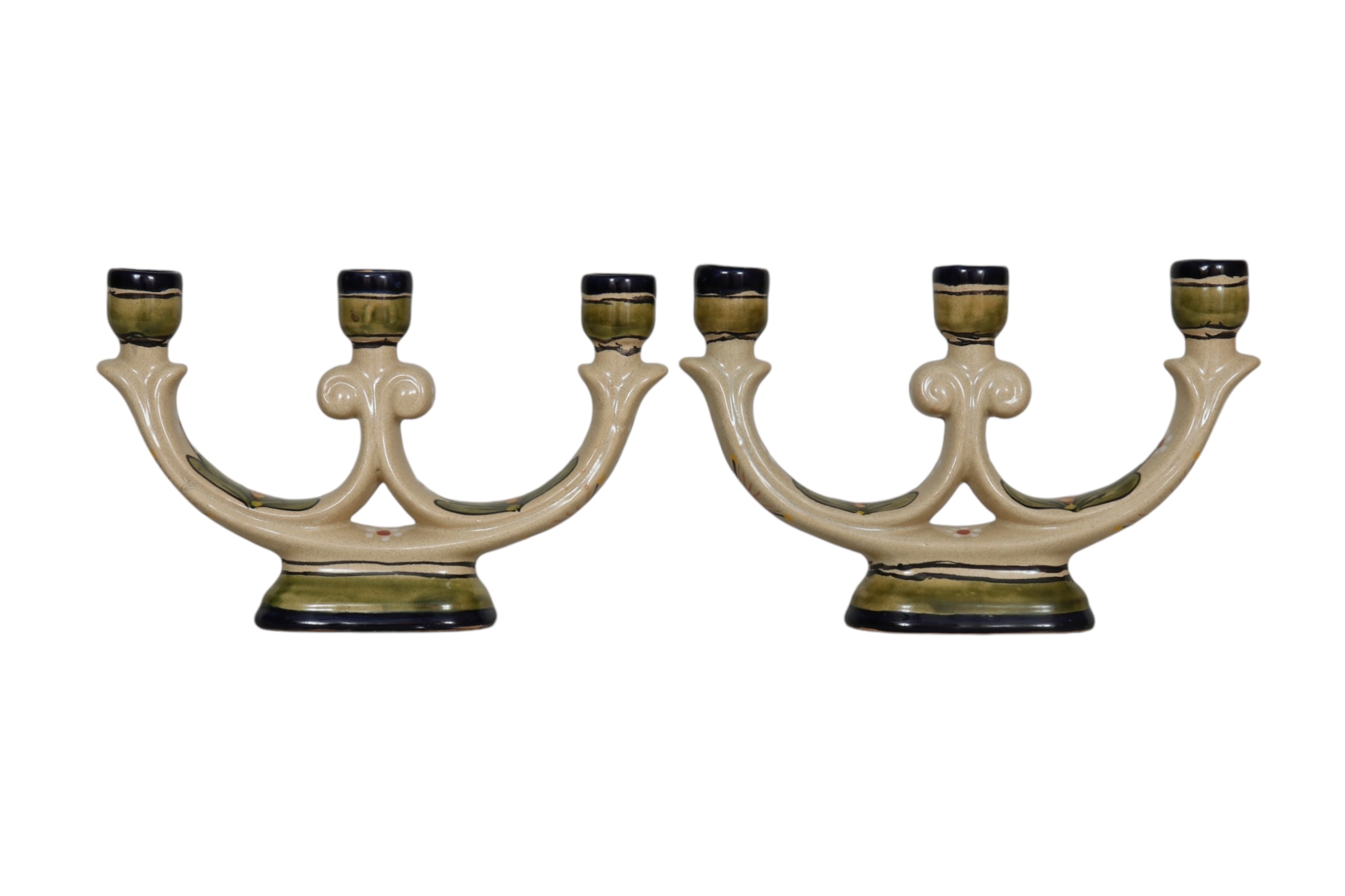 Hand Painted Ceramic Candelabras, a Pair