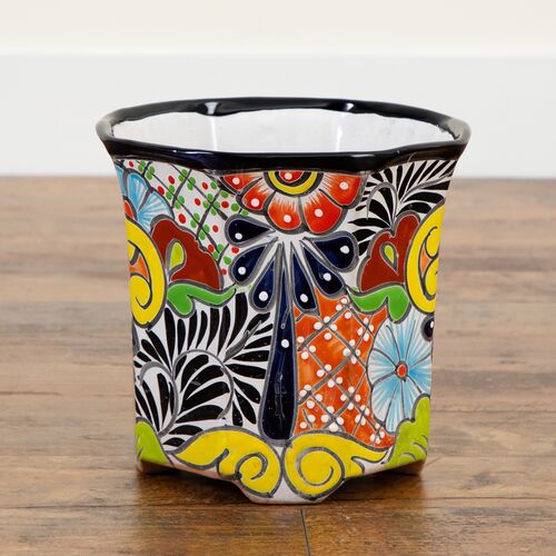 Handmade 9.5" x 10" Mexican Talavera Ceramic Planter, Multicolor