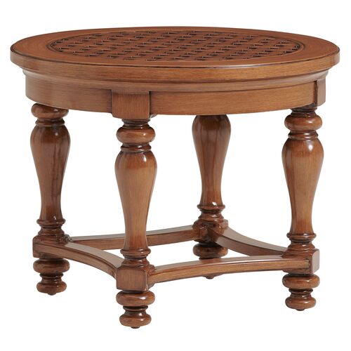 Harbor Isle Outdoor Aluminum Round Basket Weave End Table, Walnut