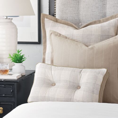 Harlen Pinstripe Flange Pillow, Latte/Ivory