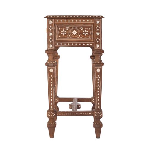Harriet Teak & Bone Inlay 1-Drawer End Table, Brown