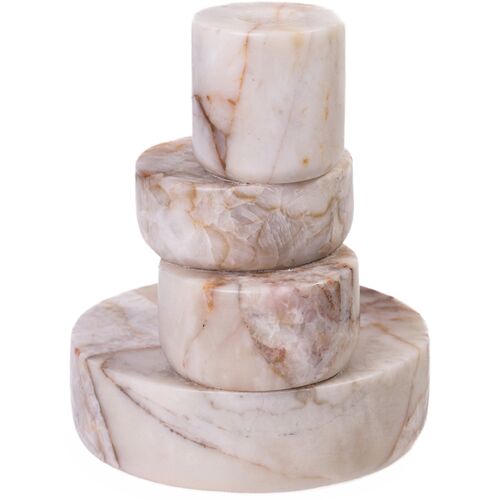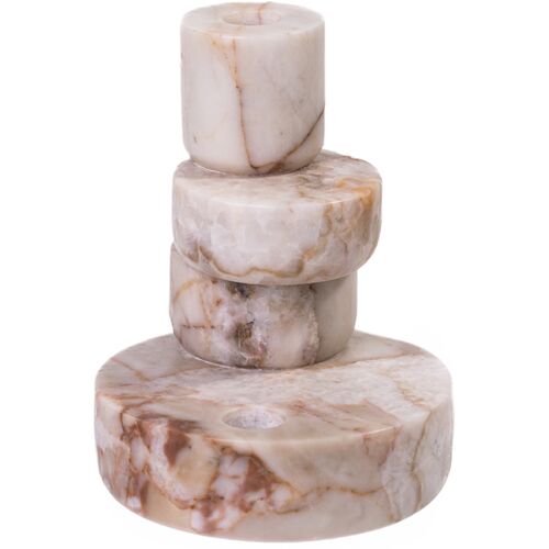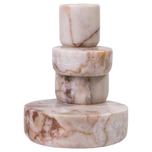 Hysorin Marble White Brown Stacked Candle Holder, Natural Marble