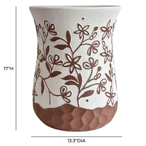 Islair Ceramic Carved Terracotta Table, Terracotta