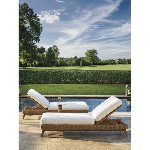 Isle Of Palms Outdoor Wicker/Teak Chaise Lounge, Textured White/Ivory