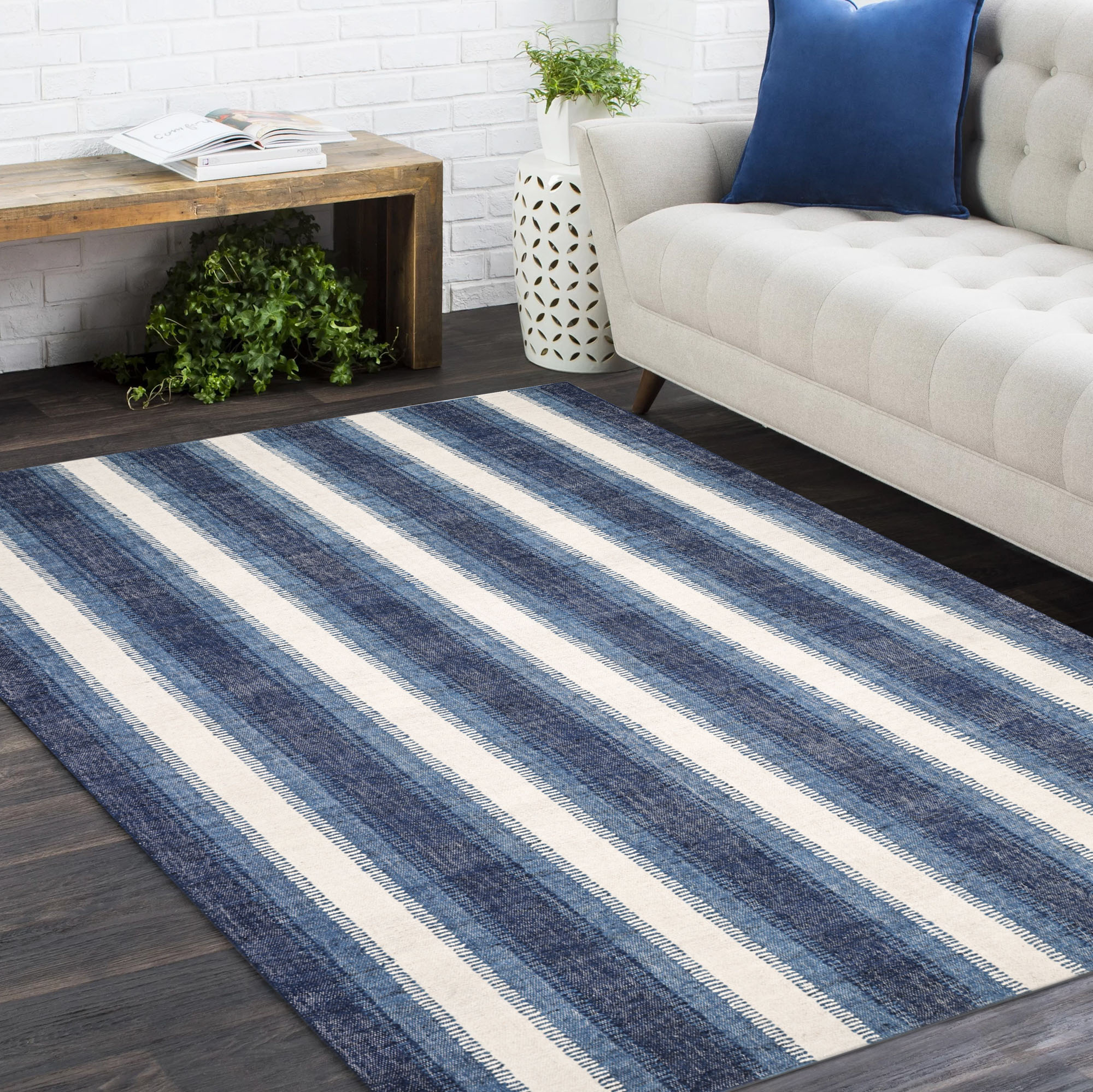 Ciara Handmade Striped Rug, Brown/Blue